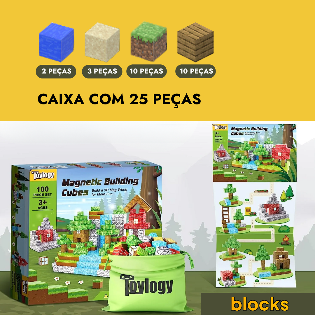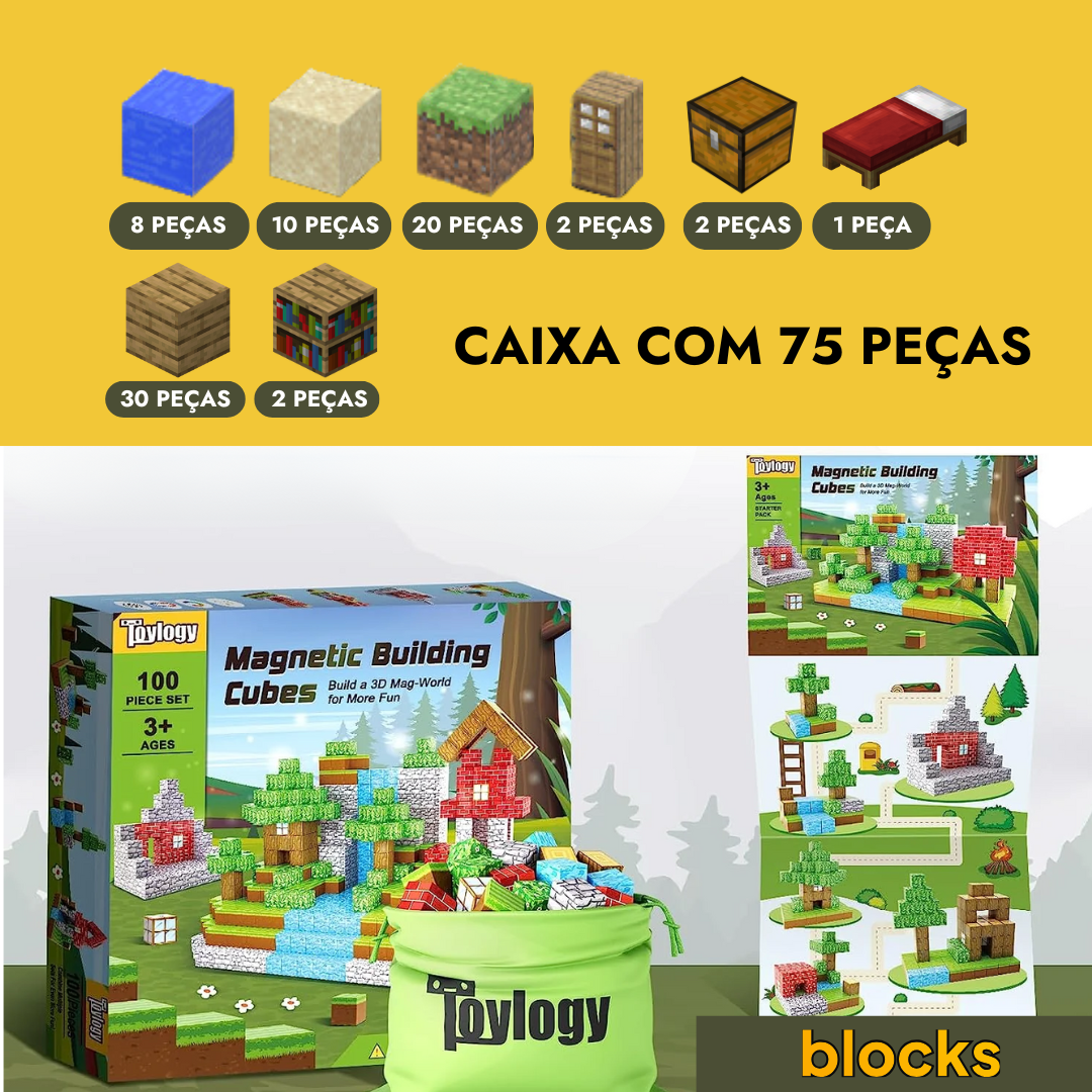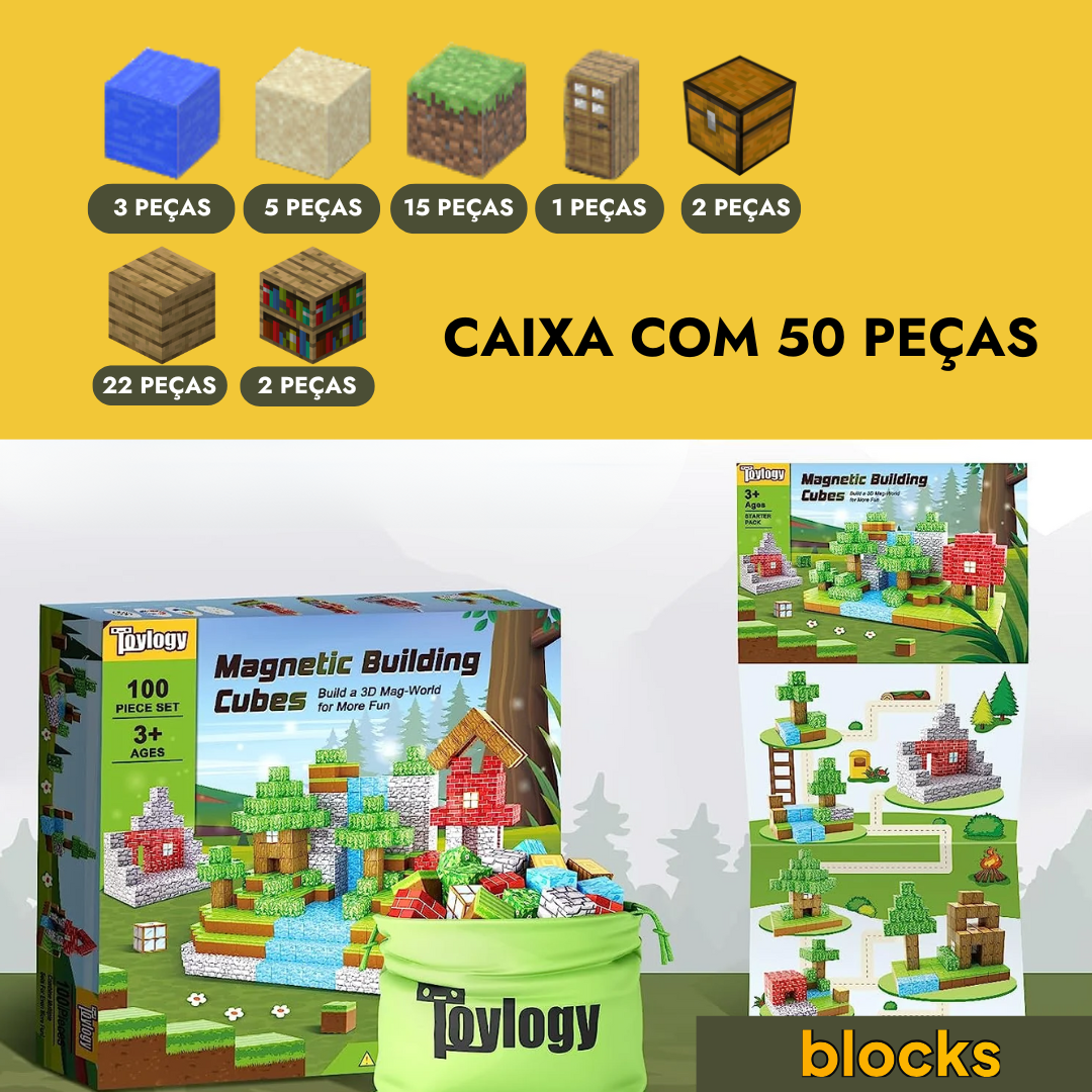 Conexão Magnética e Infinidade de Possibilidades: As peças magnéticas se conectam de forma fácil e segura, permitindo construções dinâmicas e criativas. Deixe seu filho recriar o mundo Minecraft ou imaginar novas aventuras em três dimensões!