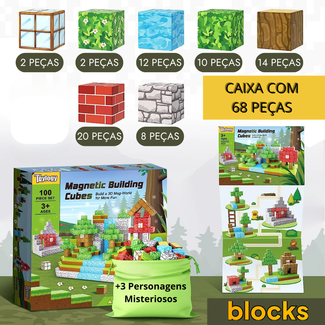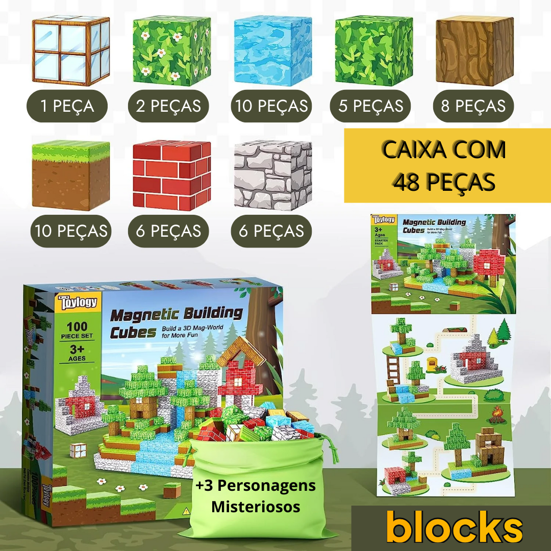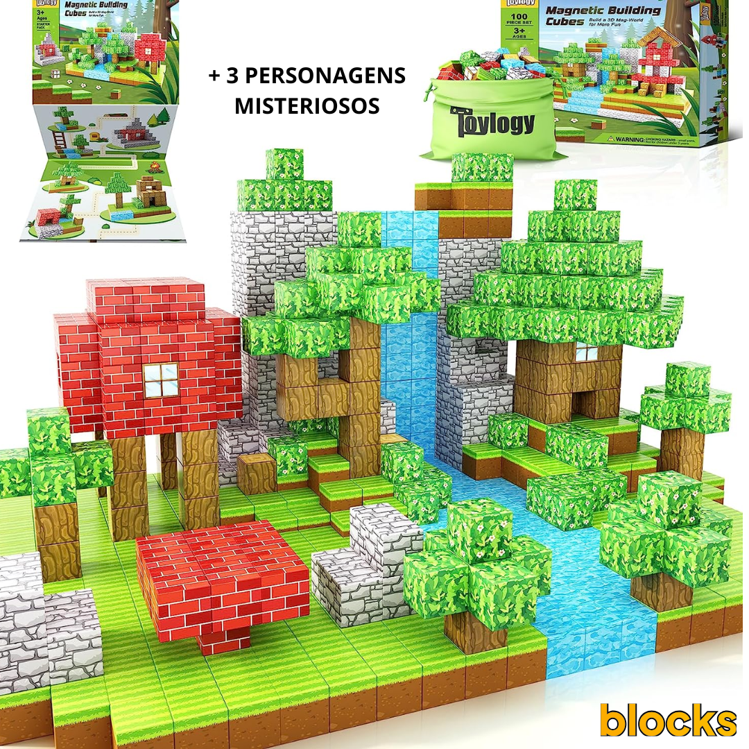 Blocos de Construção Magnética Minecraft (+ 3 Brindes) - 48/68/88 peças