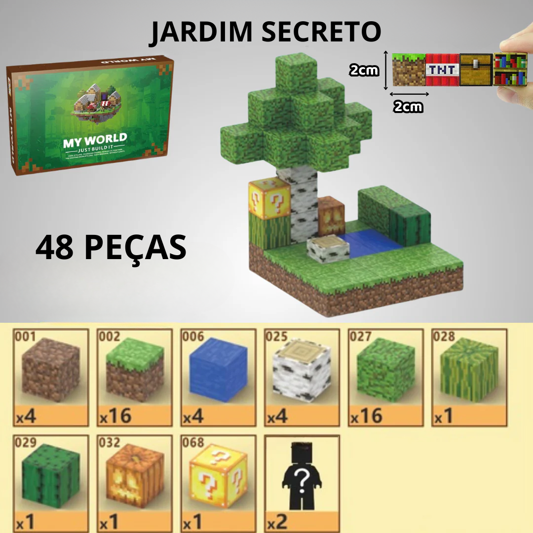 Inspiração Minecraft: Com cores vibrantes e formatos inspirados no universo icônico de Minecraft, essas peças são instantaneamente cativantes para as crianças. Elas podem criar personagens, cenários e estruturas como no jogo, mas agora ao alcance das mãos!