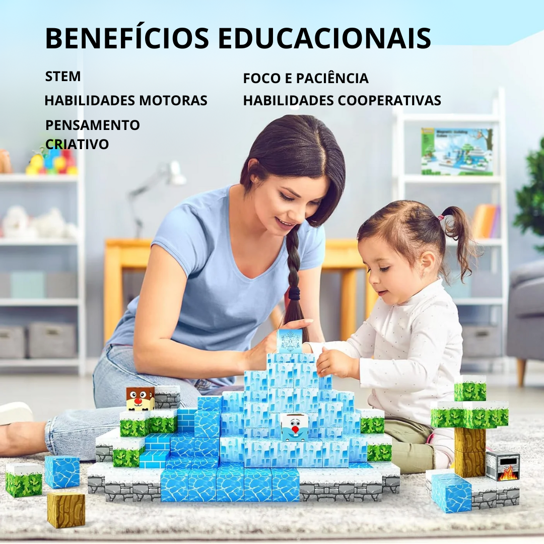 Conexão Magnética e Infinidade de Possibilidades: As peças magnéticas se conectam de forma fácil e segura, permitindo construções dinâmicas e criativas. Deixe seu filho recriar o mundo Minecraft ou imaginar novas aventuras em três dimensões!