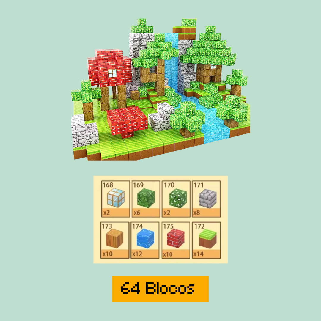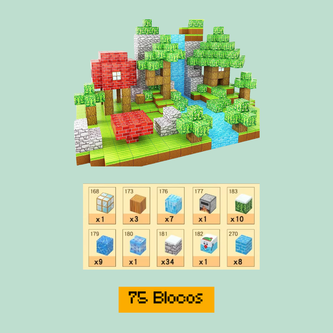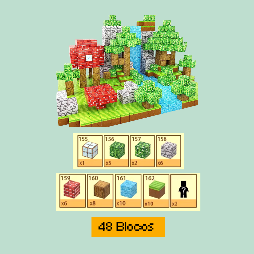 Inspiração Minecraft: Com cores vibrantes e formatos inspirados no universo icônico de Minecraft, essas peças são instantaneamente cativantes para as crianças. Elas podem criar personagens, cenários e estruturas como no jogo, mas agora ao alcance das mãos!