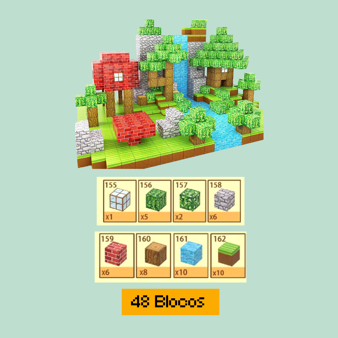Inspiração Minecraft: Com cores vibrantes e formatos inspirados no universo icônico de Minecraft, essas peças são instantaneamente cativantes para as crianças. Elas podem criar personagens, cenários e estruturas como no jogo, mas agora ao alcance das mãos!