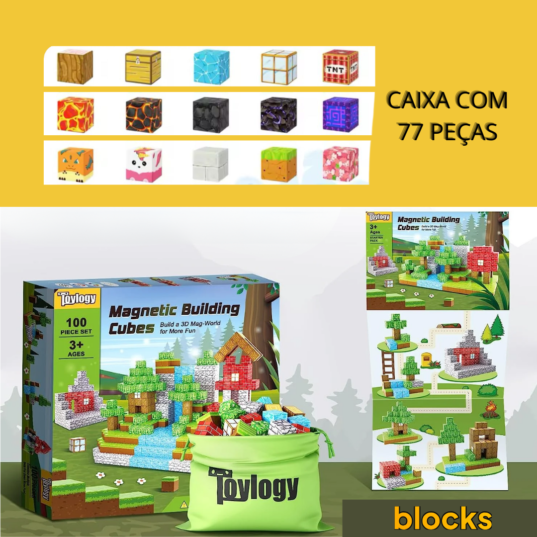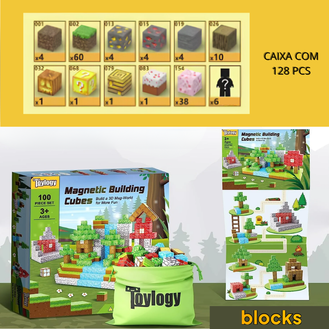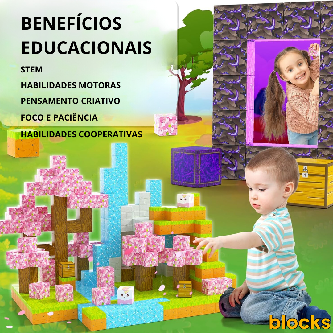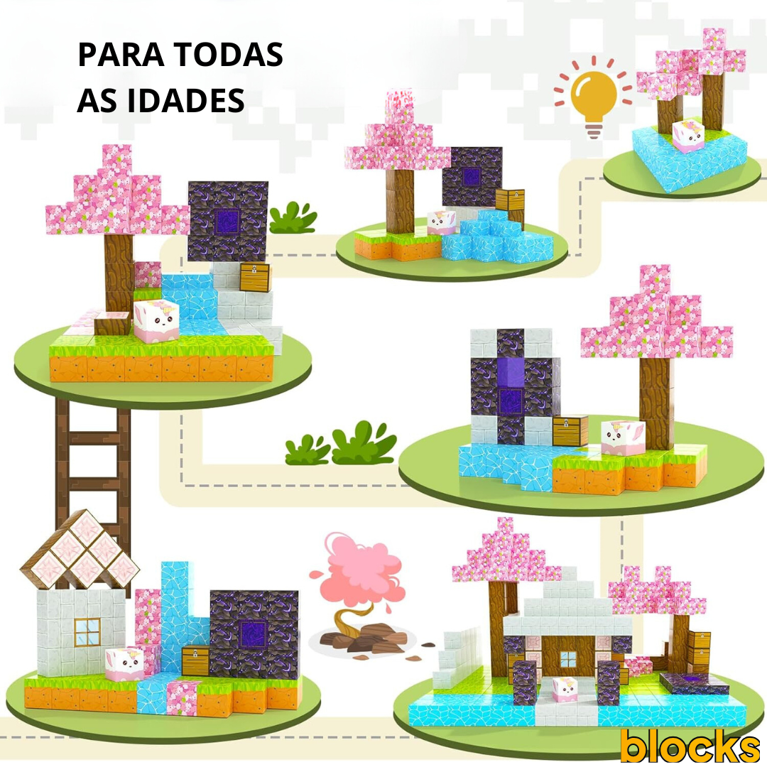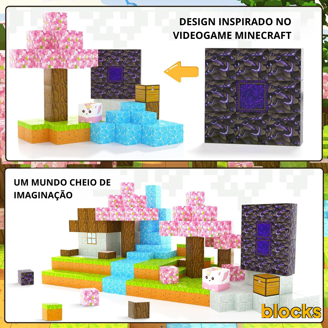 Conexão Magnética e Infinidade de Possibilidades: As peças magnéticas se conectam de forma fácil e segura, permitindo construções dinâmicas e criativas. Deixe seu filho recriar o mundo Minecraft ou imaginar novas aventuras em três dimensões!