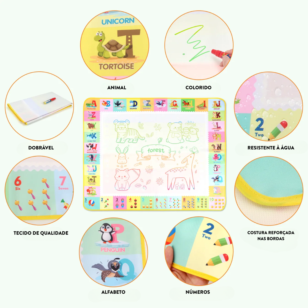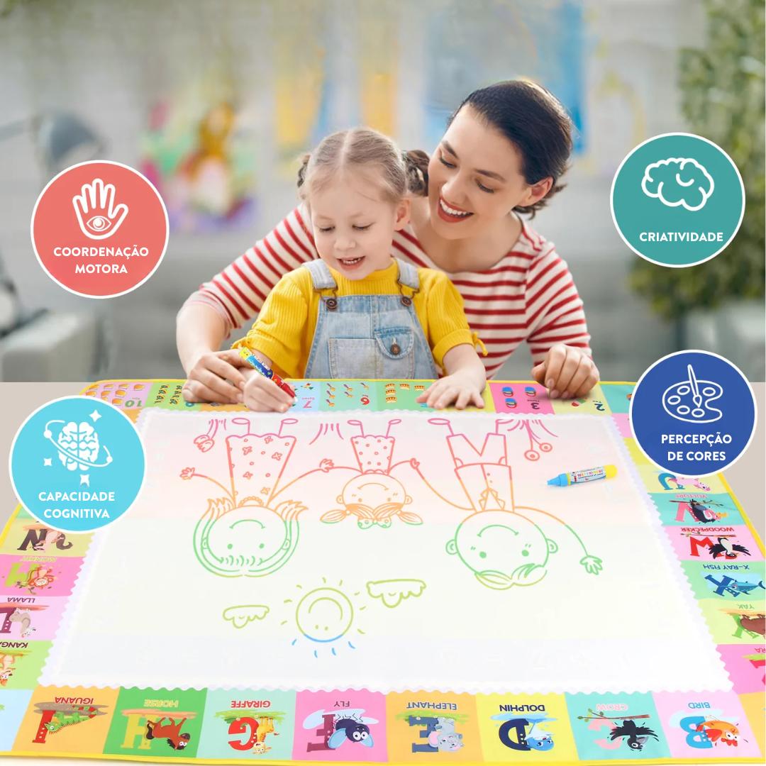 Mais do que diversão, o Tapete Mágico de Desenho é uma ferramenta educativa que estimula a criatividade, a coordenação motora e a imaginação das crianças – tudo isso sem sujeira e com total segurança!
