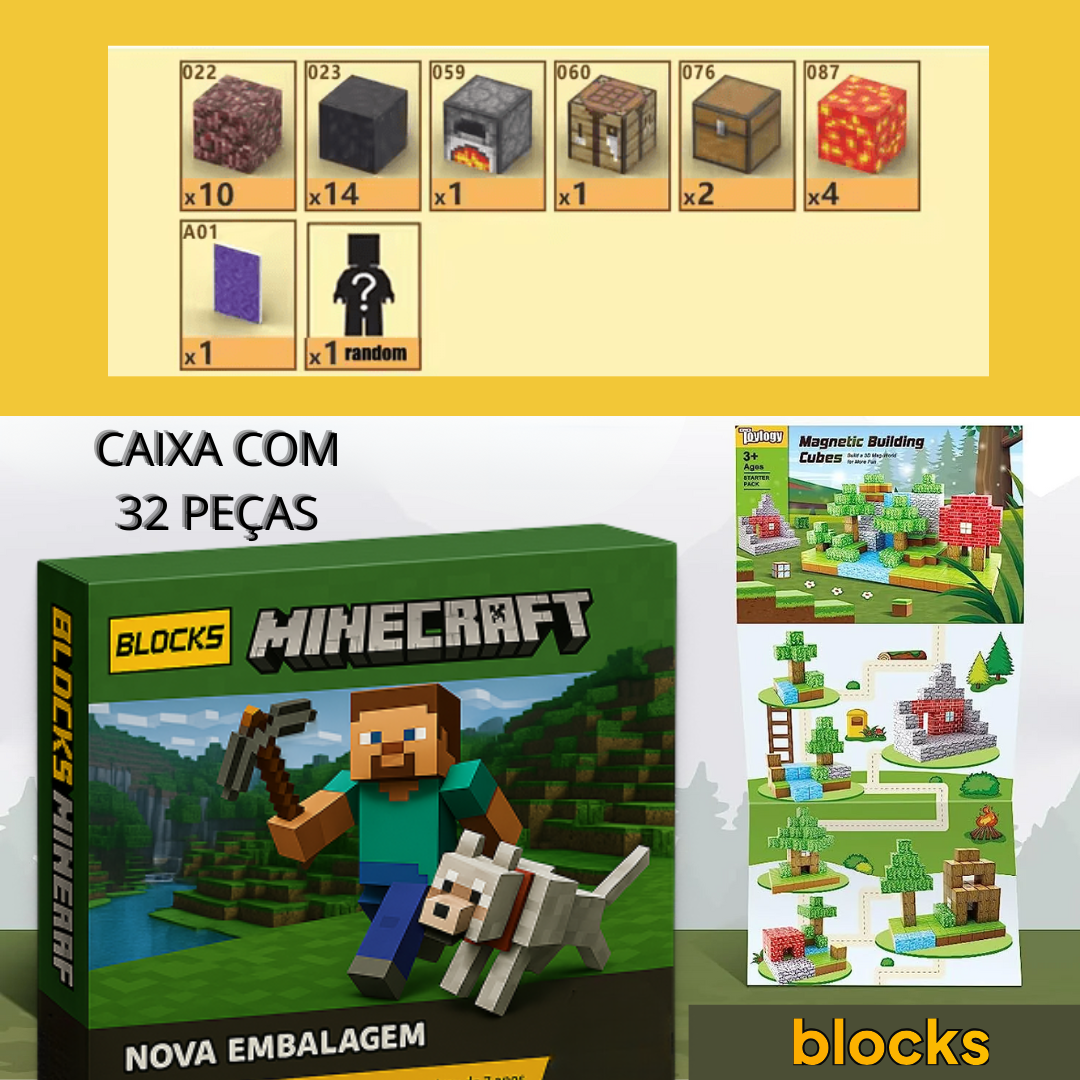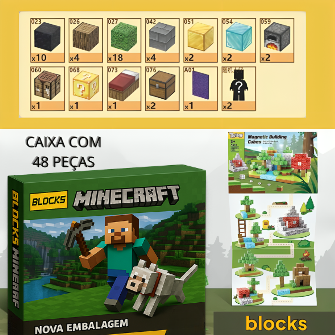 Esquenta Dia das Crianças Minecraft - 48/64/75 peças [+5 Personagens GRÁTIS]