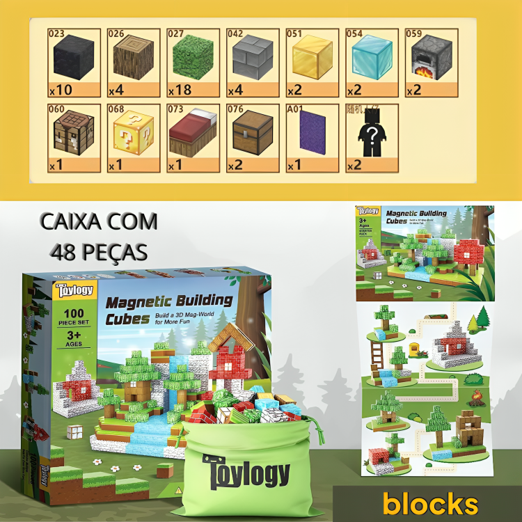 Conexão Magnética e Infinidade de Possibilidades: As peças magnéticas se conectam de forma fácil e segura, permitindo construções dinâmicas e criativas. Deixe seu filho recriar o mundo Minecraft ou imaginar novas aventuras em três dimensões!