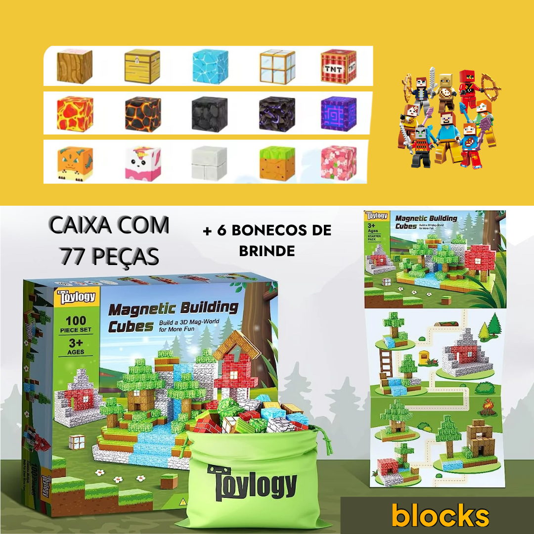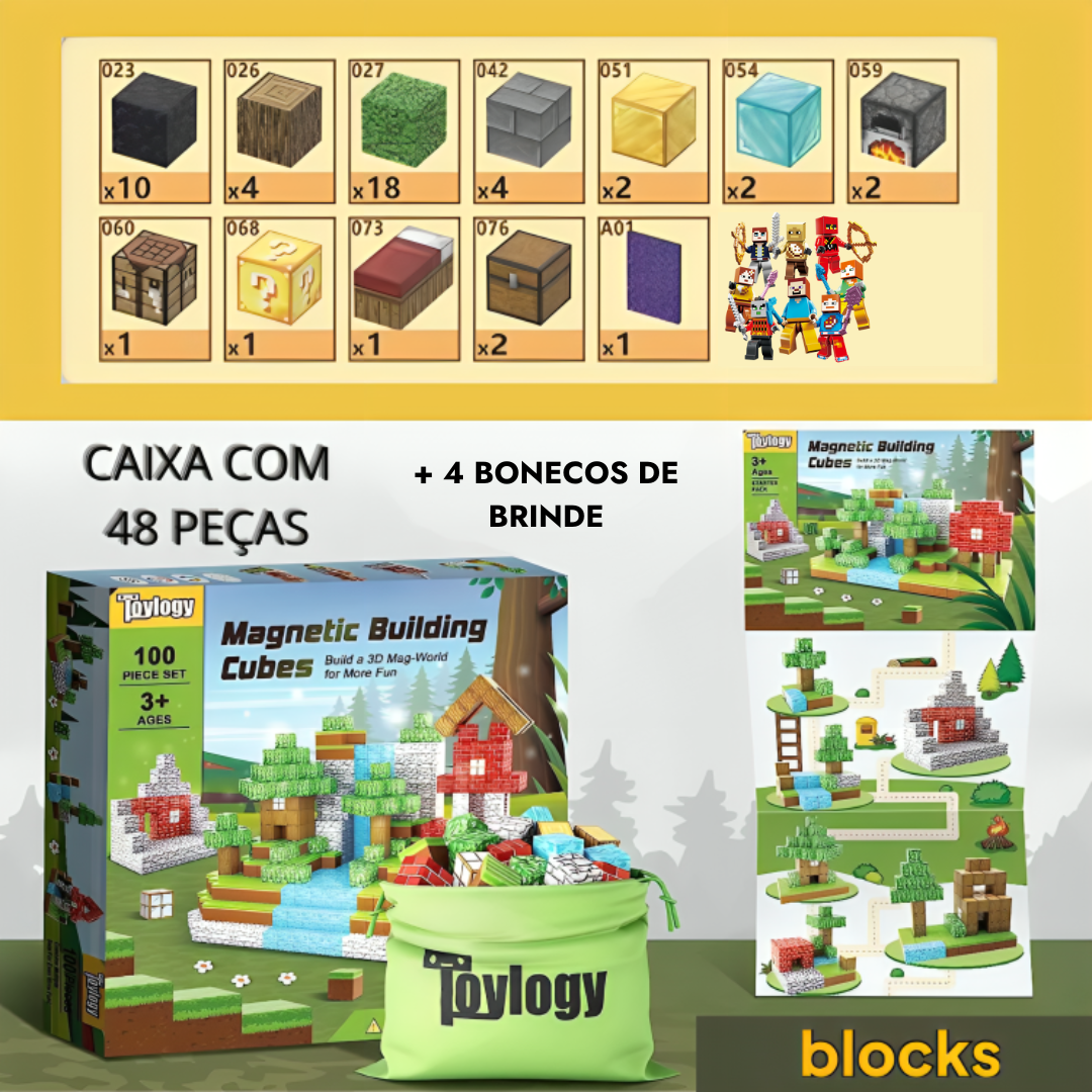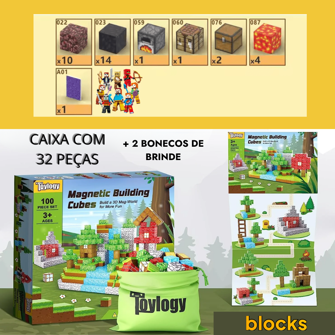 Conexão Magnética e Infinidade de Possibilidades: As peças magnéticas se conectam de forma fácil e segura, permitindo construções dinâmicas e criativas. Deixe seu filho recriar o mundo Minecraft ou imaginar novas aventuras em três dimensões!