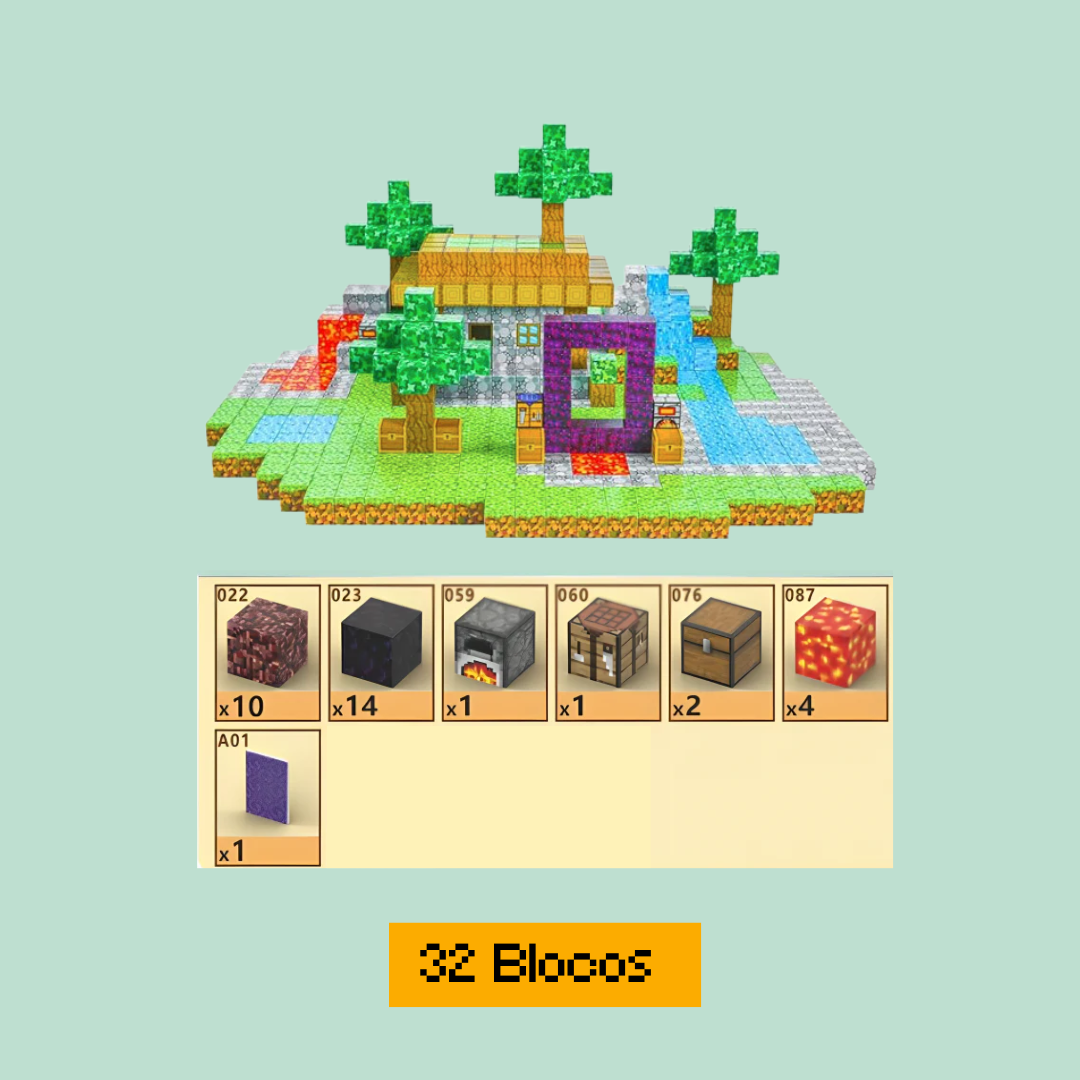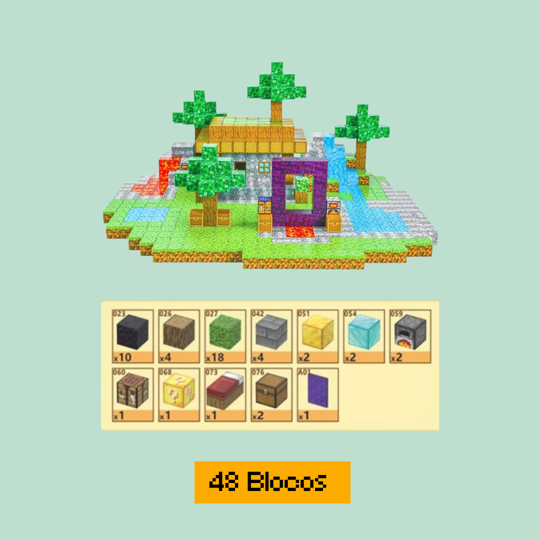 Inspiração Minecraft: Com cores vibrantes e formatos inspirados no universo icônico de Minecraft, essas peças são instantaneamente cativantes para as crianças. Elas podem criar personagens, cenários e estruturas como no jogo, mas agora ao alcance das mãos!