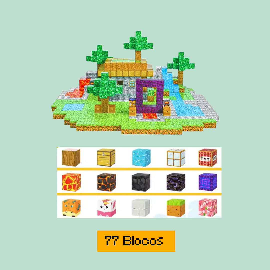 Conexão Magnética e Infinidade de Possibilidades: As peças magnéticas se conectam de forma fácil e segura, permitindo construções dinâmicas e criativas. Deixe seu filho recriar o mundo Minecraft ou imaginar novas aventuras em três dimensões!