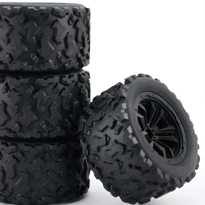 Rodas de grande tamanho e alta tração: Os pneus são feitos de borracha antiderrapante e oferecem excelente aderência em superfícies irregulares, garantindo desempenho ideal mesmo nos terrenos mais difíceis.
