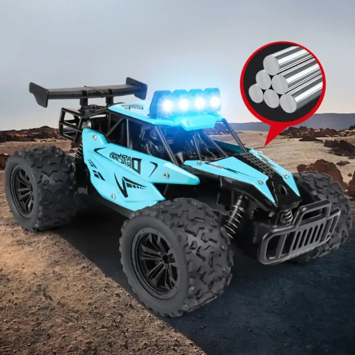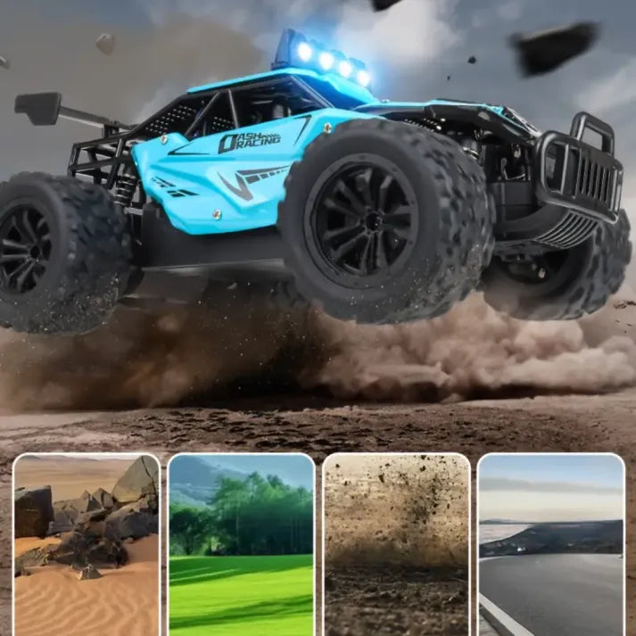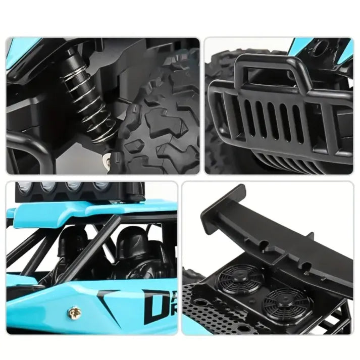 Design off-road resistente e durável: Este veículo é fabricado com materiais de alta qualidade que permitem suportar impactos, quedas e condições extremas em diferentes tipos de terreno, como areia, pedras, lama e asfalto.